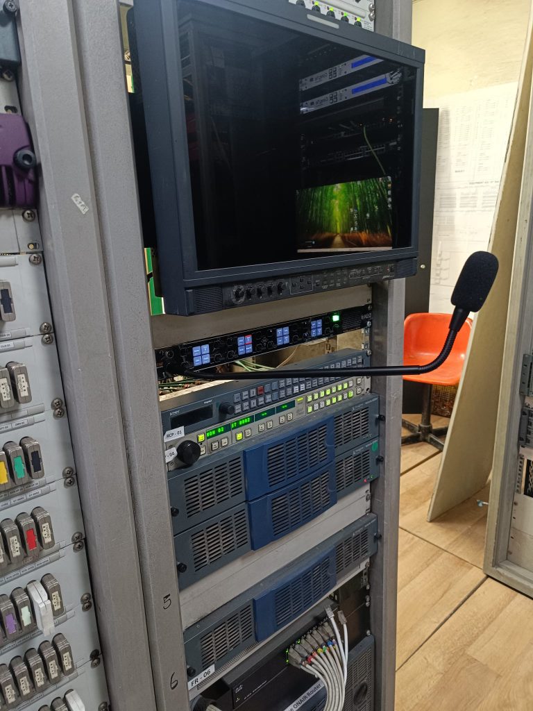 La estructura del sistema AEQ CONEXIA se basa en la matriz de audio XCORE, alojada en un chasis de cuatro unidades de rack dividido en tres bloques principales. En la parte frontal se encuentran los slots destinados a las tarjetas DSP, encargadas del procesado de audio y de los puntos de cruce de las comunicaciones. Este procesamiento se realiza de forma dinámica, lo que permite disponer de tarjetas de back-up con conmutación automática de funciones. El sistema cuenta con 20 slots para estas tarjetas, que se utilizan en función del tamaño del sistema y de los requisitos de la instalación. En la parte trasera, el sistema dispone de dos tipos de slots: dos destinados a las tarjetas controladoras, con opción de redundancia, y otros 21 dedicados a las tarjetas de entrada y salida para los distintos formatos de audio requeridos en cada aplicación, como SDI, fibra, AoIP, audio analógico o digital, entre otros. Por último, el sistema incorpora un back-panel central que actúa como punto de interconexión y como plataforma de transmisión del bus TDM de 1.024 canales del sistema. El Master de CONEXIA aporta un nivel superior de gestión, permitiendo el control de toda la capa de intercomunicación y distribuyendo las órdenes de puntos de cruce definidas en el mapa de configuración creado por el usuario.